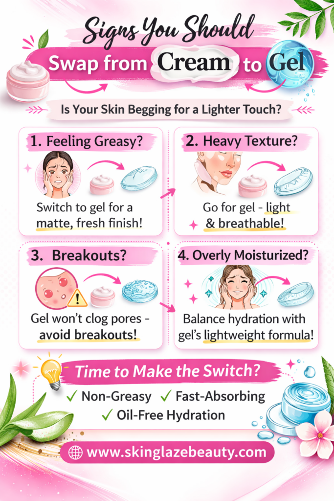 It’s not always obvious when it’s time to make the switch from creams to gels. However, several signs indicate your skin might benefit from a lighter, gel-based product.